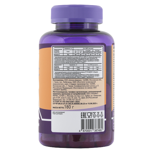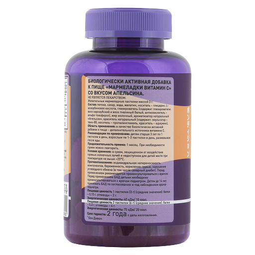 патока, сахар, вода, желатин, носитель – глицерин, L-аскорбиновая кислота, глазирователь (содержит глазирователи: воск карнаубский и воск пчелиный белый, антиокислитель – альфа-токоферол), жир молочный; для вкуса апельсина: ароматизатор натуральный «Апельсин», краситель натуральный (содержит: эмульгатор – твин-80, носитель – пропиленгликоль, краситель – куркумин).